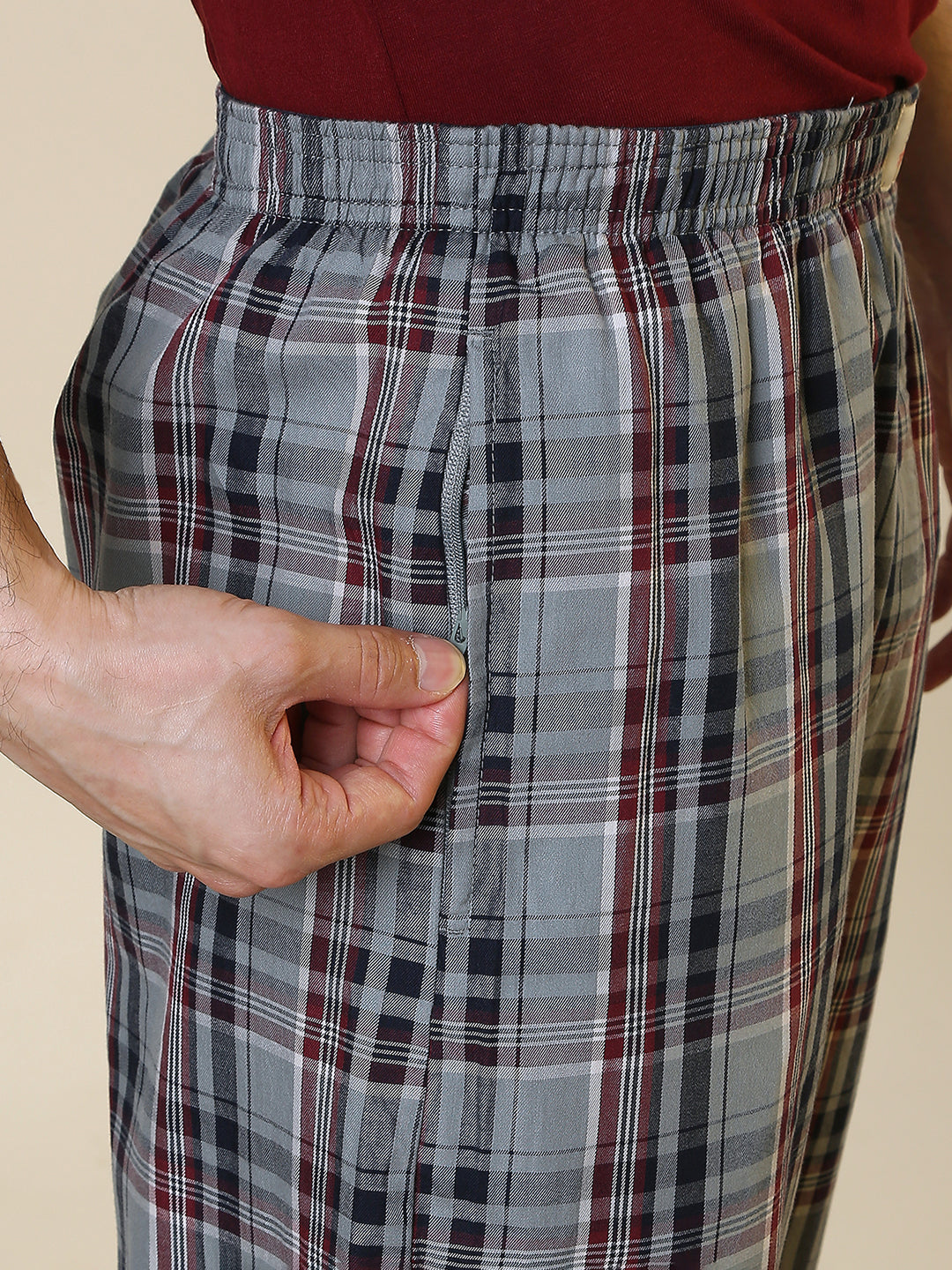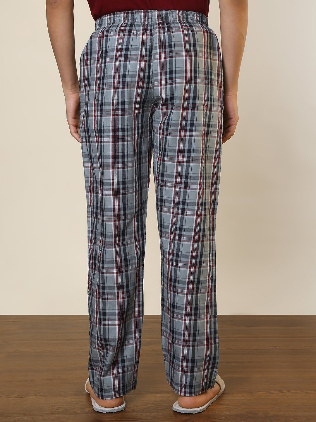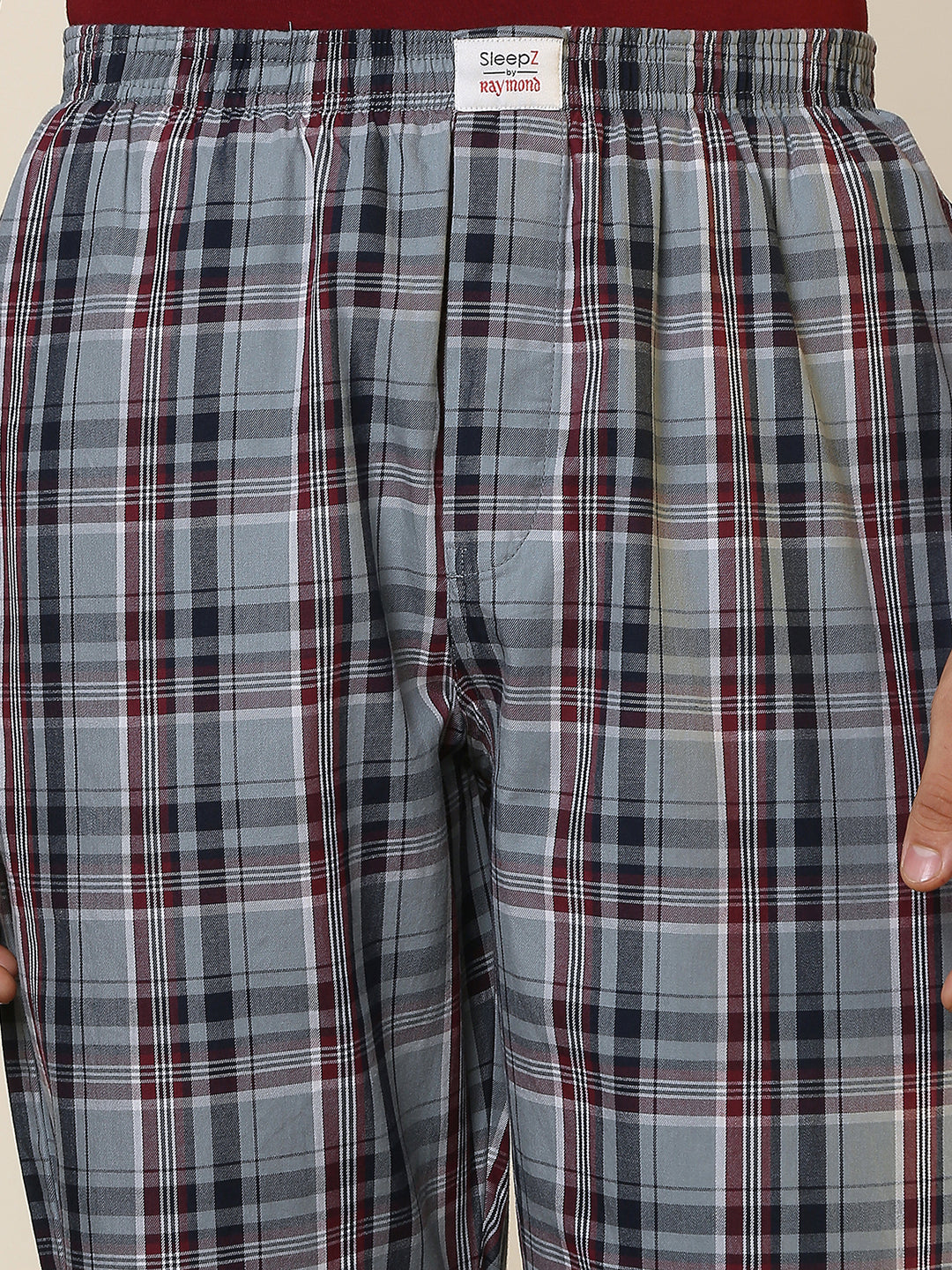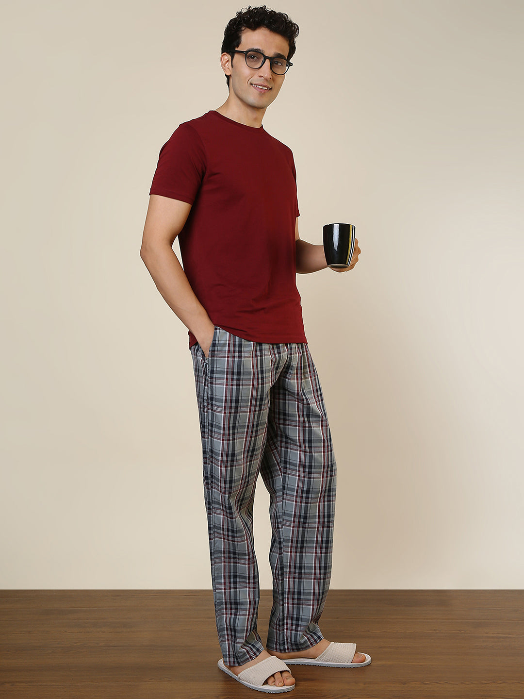 Sleepz Men Grey Checks Regular Fit Cotton Pyjama