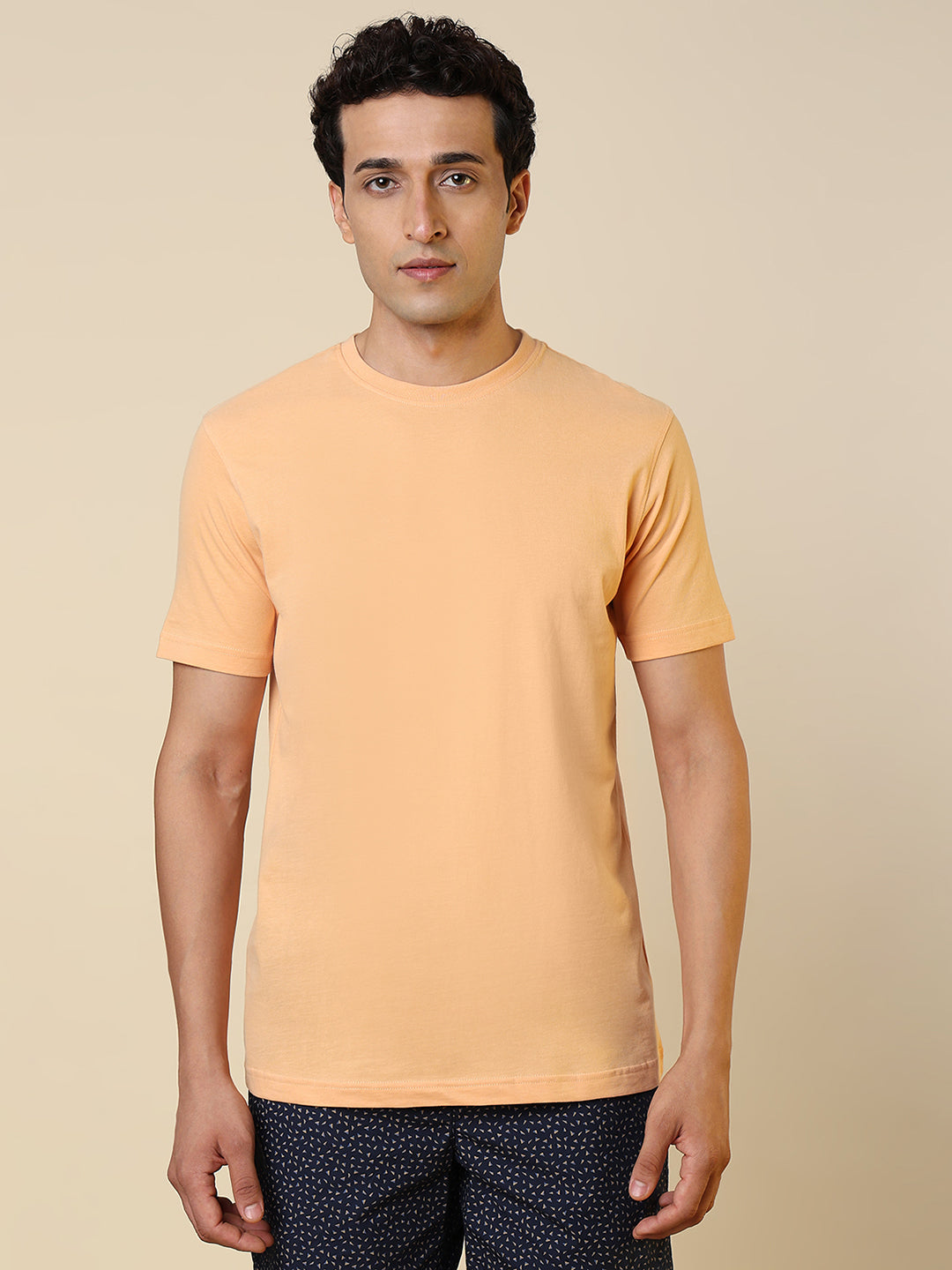 Men Orange Solid Regular Fit Cotton T-Shirt