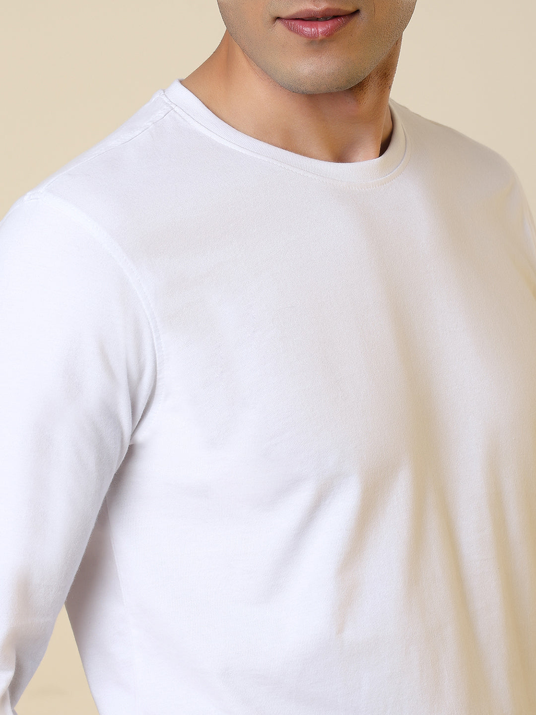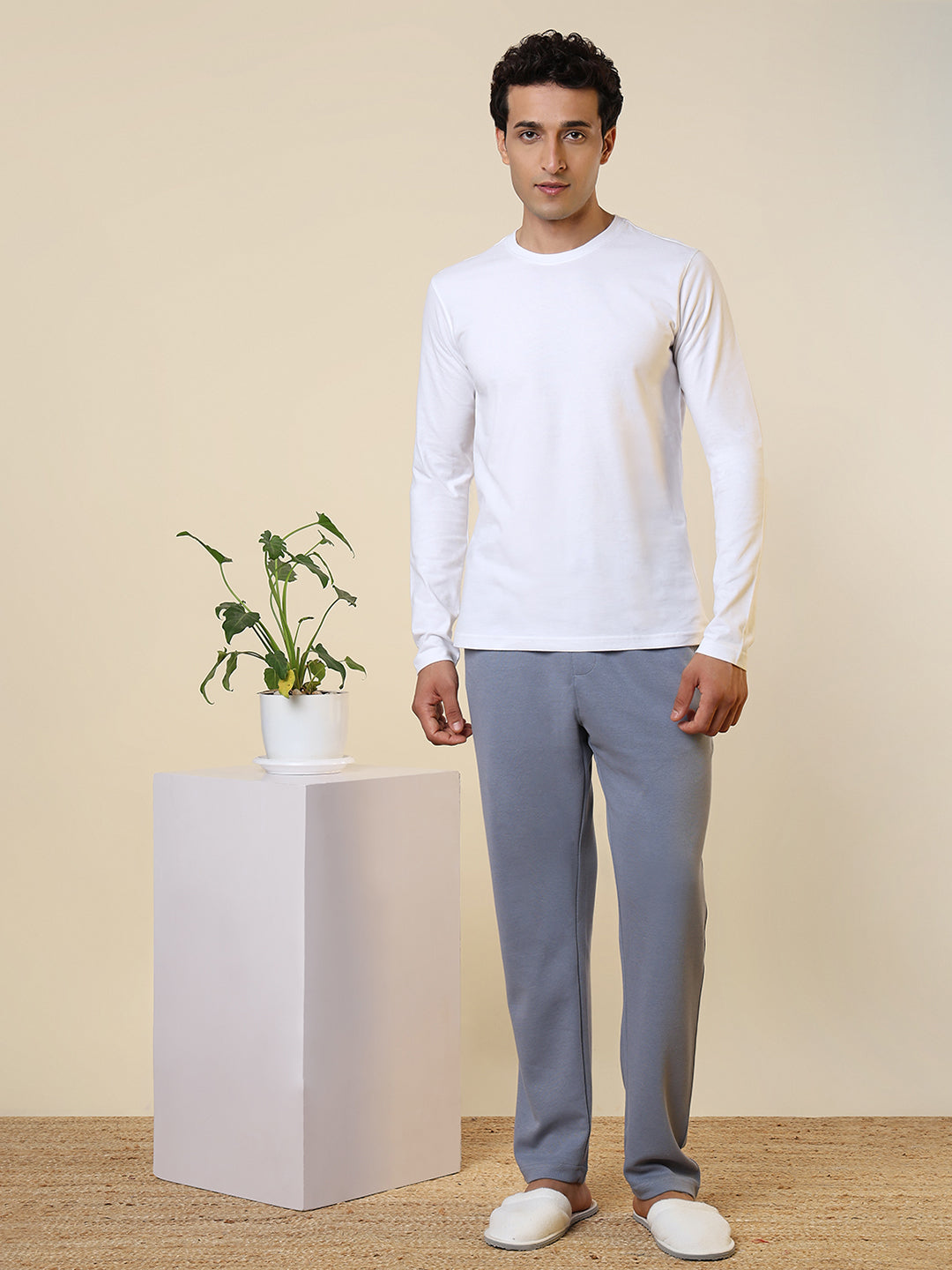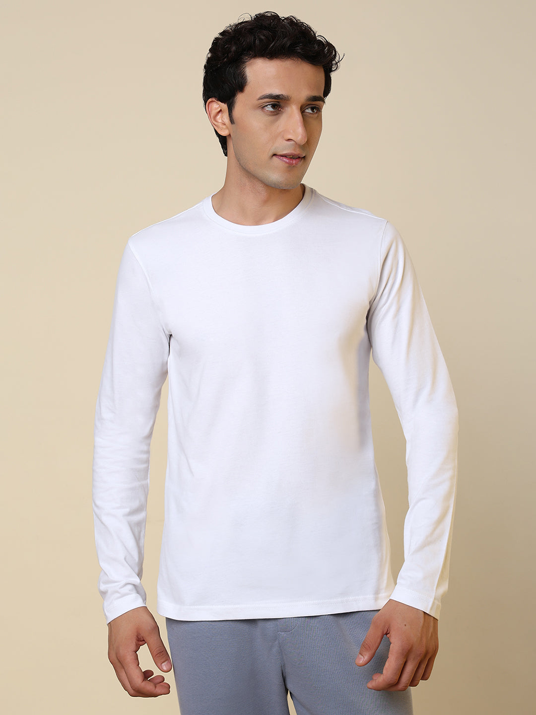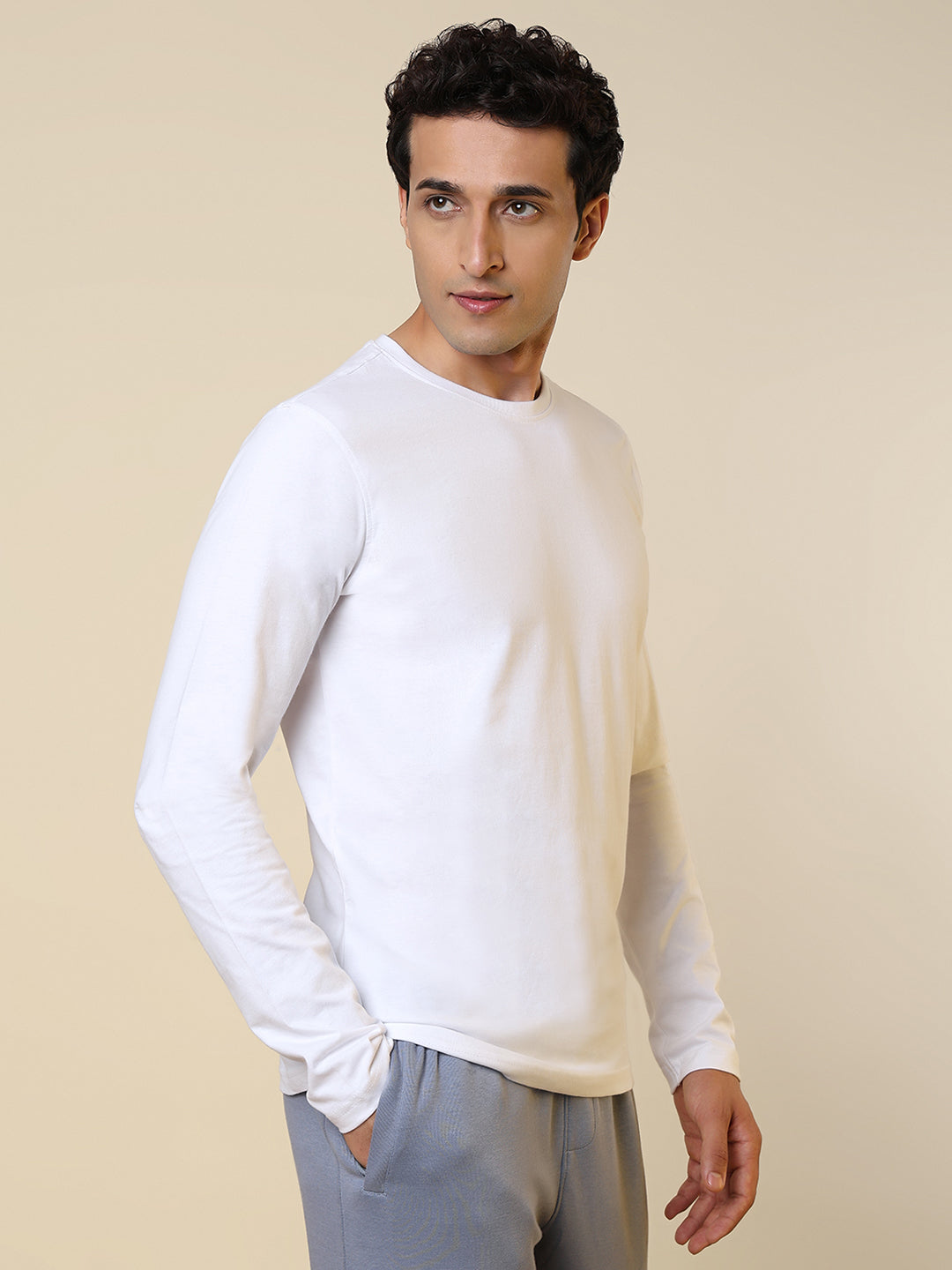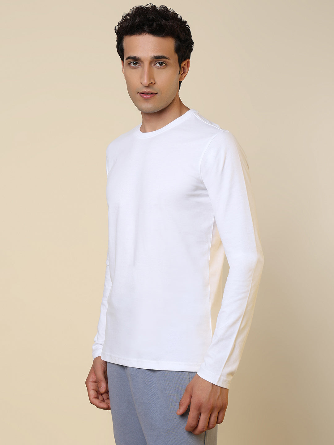 Sleepz Men White Solid Regular Fit Cotton T-Shirt