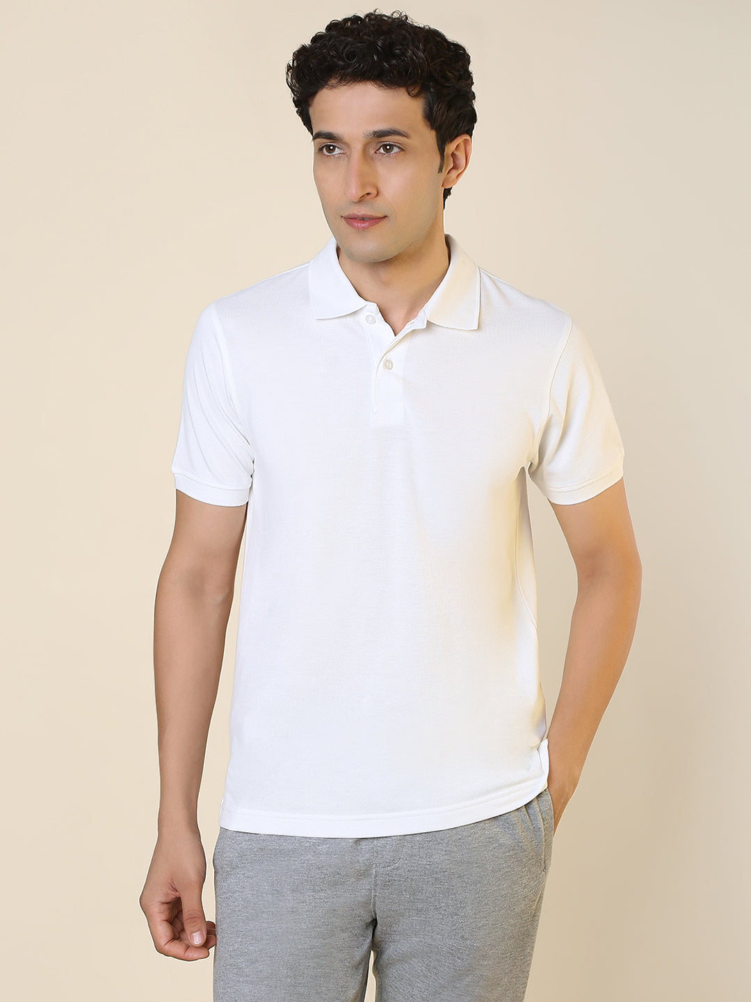 Sleepz Men White Solid Regular Fit Cotton T-Shirt