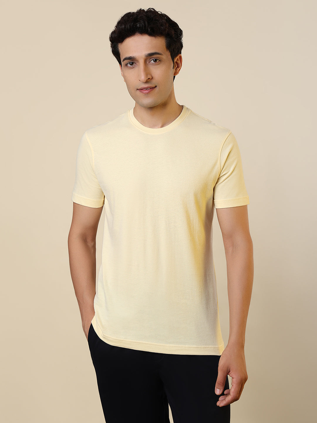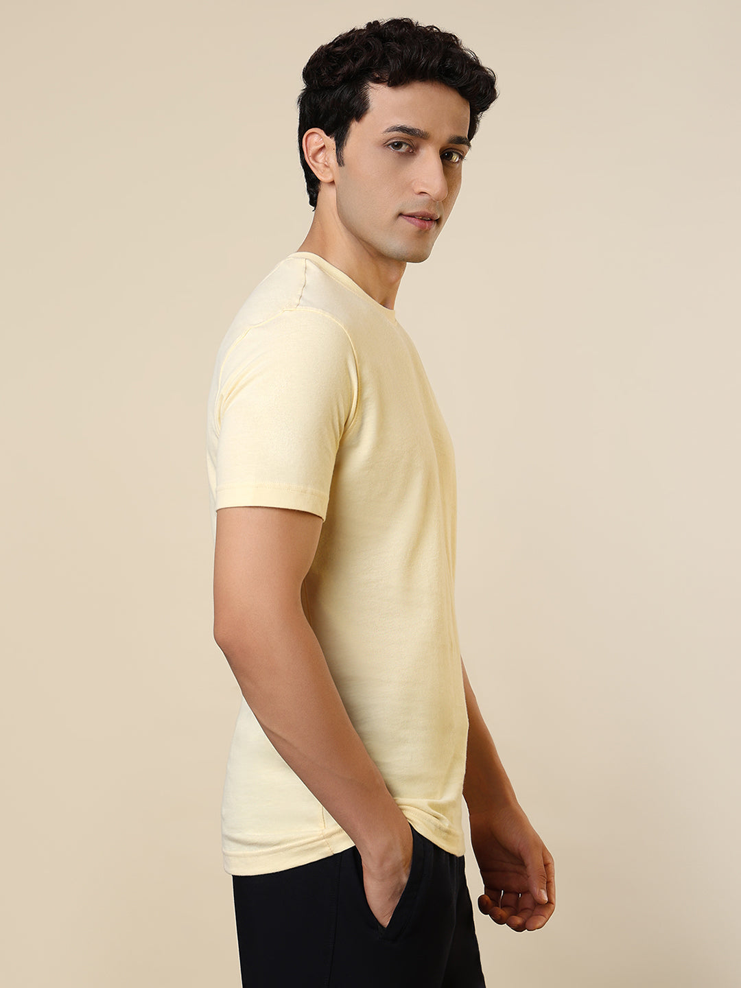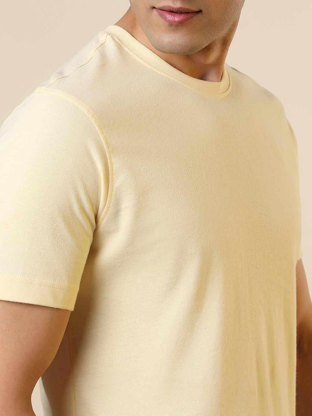 Men Yellow Solid Regular Fit Cotton T-Shirt