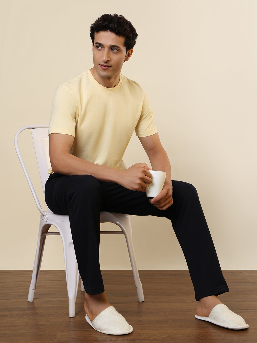Sleepz Men Yellow Solid Regular Fit Cotton T-Shirt